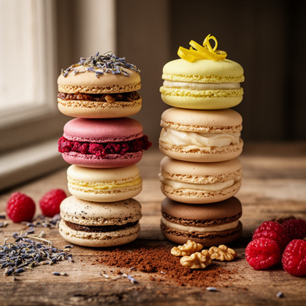 Every macaron is a miniature work of art, from classic Lemon to indulgent Fig & Goat Cheese or bold Halva & Tahini. Part of our Desert Bloom Collection, each piece evokes the warmth and beauty of nature, delivering a cozy, indulgent experience in every bite.